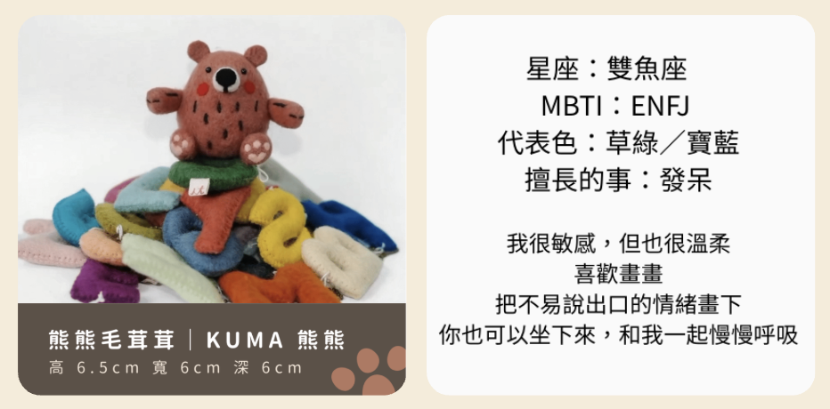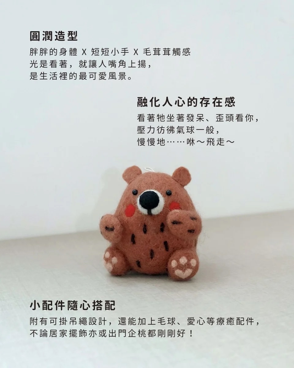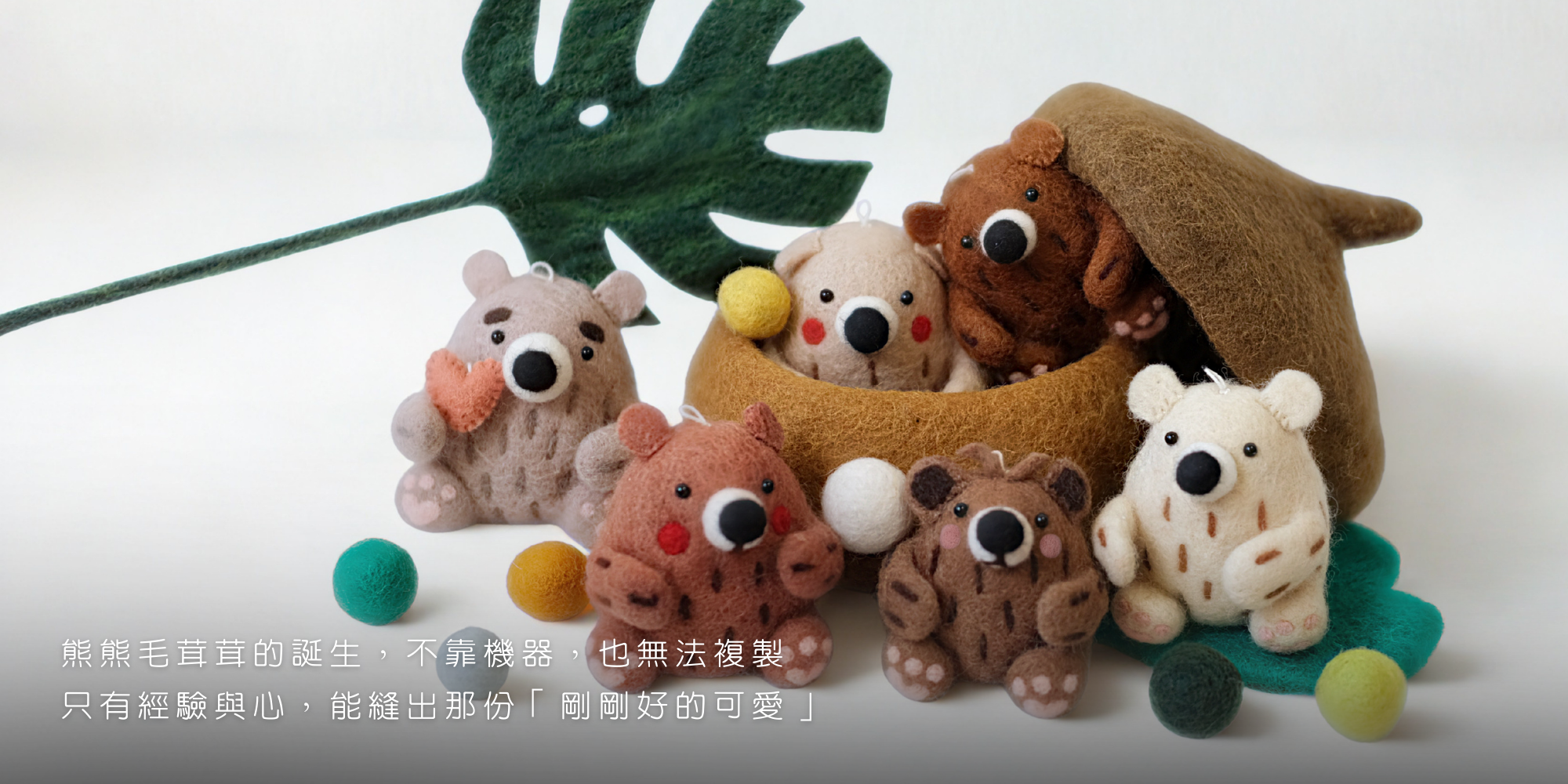 誕生「熊熊毛茸茸」。選用天然羊毛,由尼泊爾婦女手工戳製,來自喜馬拉雅山腳下的雙手,慢慢戳出每隻有情緒與故事的熊熊。邀請您,為生活選擇更柔軟的節奏,也為世界,留下溫柔的重量。